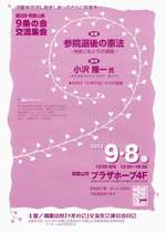 活動を交流し励ましあってさらに前進を! 日時:2013年9月8日(日) 開場午後1時 開会1時半 閉会4時半 会場:プラザホープ4Fホール 和歌山市北出島1-5-47 TEL073-425-3335 内容:①講演小沢隆一氏(東京慈恵会医科大学教授) 「参院選後の憲法―情勢と私たちの課題―」 ②各会の発表(はしもと9条の会,和歌山うたごえ九条の会, 守ろう9条 紀の川 市民の会,和歌山大学憲法9条の会, 9条の会・美浜,楠見子連れ9条の会,輝け9条!芳養の会, 憲法9条を守る和歌山弁護士の会) 主催:和歌山県「9条の会」交流集会運営委員会 問合せ先:〒640-8510 和歌山市栄谷930 和歌山大学教育学部 柏原研究室 ℡073-457-7279 メール kashi@384.jp 憲法学者・「九条の会」事務局員の小沢氏講演。8団体が発言。 200人参加。講演で情勢と課題つかむ。各会発表に元気と教訓。 <写真> <手記> |