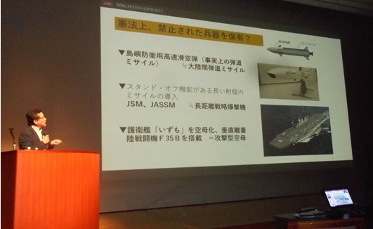 5月20日に和歌山市の県立図書館メディアアートホールで、防衛ジャーナリスト半田滋氏が「敵基地攻撃と日米一体化、防衛費倍増は国民負担に」と題し、次のような講演をされました。