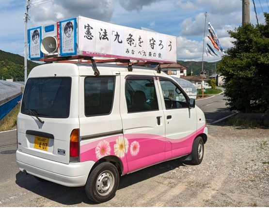 みなべ「九条の会」では、毎年5月3日の憲法記念日には宣伝カーによる街頭宣伝と憲法9条への思いを載せたチラシを作成し、町内に配られる各新聞に折り込みを続けています。