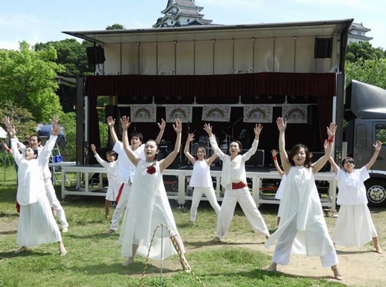 ステージでは、和歌山高等学校総合音楽部「バンド演奏」、和歌山朝鮮初中級学校「民族音楽演奏」、「ハワイアンフラ」、ぴょんぴょん亭うさぎ(高校生)「落語」、Miya & Kumi「独唱とピアノ伴奏」、けん玉パフォーマンス、紀道「創作ダンス」、Crowfield「バンド演奏」など様々な演目が披露され、聴衆は音楽に合わせて体を動かしたり、演技に感嘆したりして楽しんでいました。(柏原)