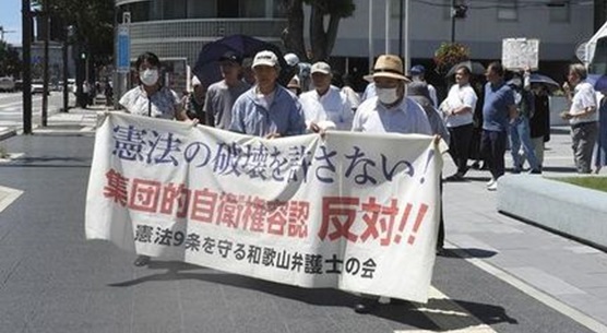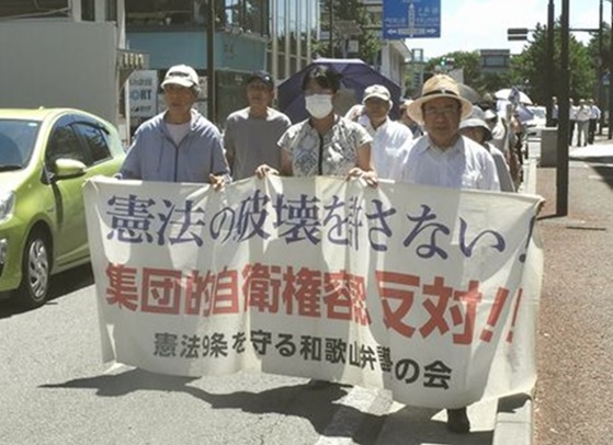 相変わらずの酷暑の8月22日、第122回の「憲法の破壊を許さないランチタイムデモ」(呼びかけ:憲法9条を守る和歌山弁護士の会)が行われ、50人の市民が参加しました。
