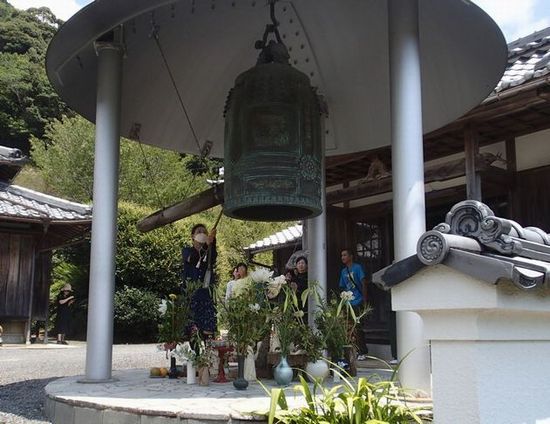また、ここ数年、清川地区にある本誓禅寺に宣伝カーで寄らせてもらい、「平和の鐘」にも参加しています。