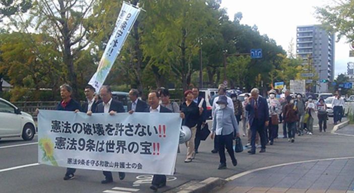 10月28日、124回目の「憲法の破壊を許さないランチタイムデモ」(呼びかけ:憲法9条を守る和歌山弁護士の会)が実施され、50人の市民が参加しました。
