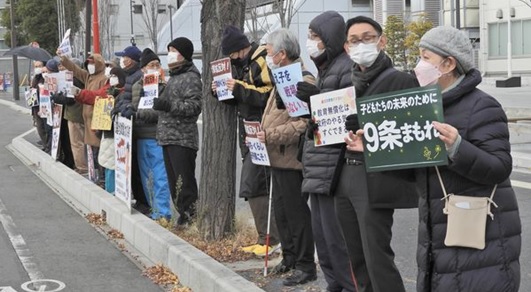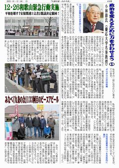 12月26日、「憲法九条を守るわかやま県民の会」「憲法9条を守る和歌山市共同センター」が呼びかけた「増税・軍拡NO!くらしと教育を12・26和歌山緊急行動」が、和歌山城ホール前で行われ、30名が参加しました。