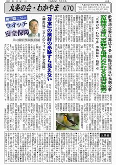 みなべ「九条の会」は1月8日、岸田内閣が専守防衛を投げ捨て「敵基地攻撃」の実施と防衛予算を大幅に増やし、国民に押し付ける方向へ大きく舵を切った中で、そのことを大いに訴えようと、133回目のピースアピールを実施しました。