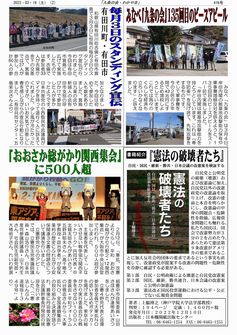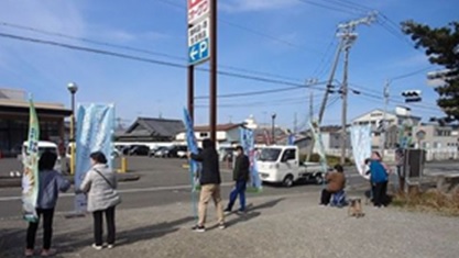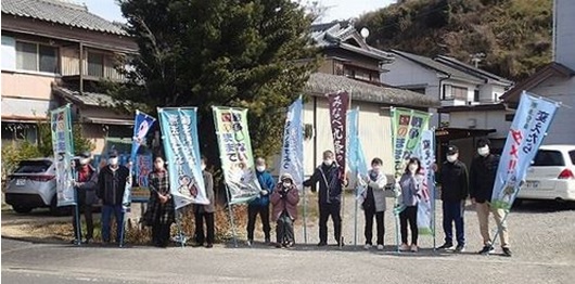 和歌山県有田川町吉備と有田市箕島で3月3日に恒例の毎月3日のスタンディング宣伝が行われました。今回は有田市箕島にも広げて実施したものです。吉備では参加者33人が吉備庁舎下の交差点で、箕島では27人が参加し、合計60人の参加となりました。今回は初めて参加した人も数名ありました。箕島は九条の会や新婦人の会有田市支部の呼びかけで参加した人が多かったようです。日本共産党の小西敬民市会議員がマイクを持って道行く人に訴えてくれました。少し風が冷たかったのですが、いいお天気で日差しに春を感じながらの宣伝行動になりました。(有田共同センター・五島栄次さんより)
