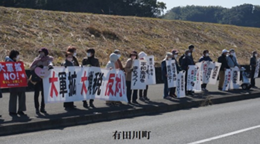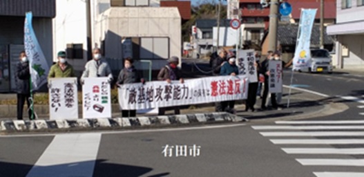みなべ「九条の会」は3月4日、岸田内閣の敵基地攻撃能力保有や軍事費増額反対を訴えようと、135回目のピースアピールをスーパー前で実施しました。