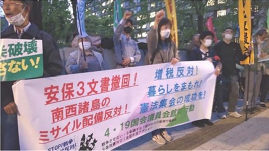 総がかり行動実行委員会は4月19日に国会議員会館前で、「4・19国会議員会館前行動」を行い、1100人が参加しました。岸田政権は、防衛力の財源確保に関する特別措置法案、入管法改悪法案、原発推進法案、マイナンバー法改定案などの悪法を次々と強行しようとしています。23日投票の統一地方選挙後半戦で、「大軍拡・大増税反対、改憲反対、くらしを守る政党の議員を勝利させよう」と決意を固めあいました。共産党・赤嶺衆議院議員、沖縄の風・高良参議院議員、社民党・大椿参議院議員、立憲民主党・近藤衆議院議員があいさつしました。
