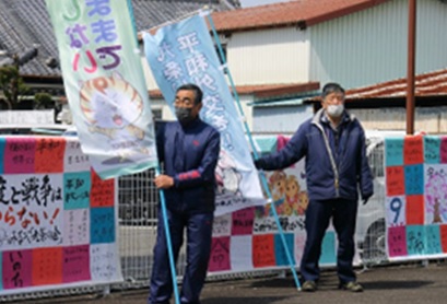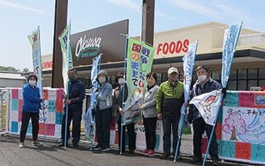 みなべ「九条の会」は4月8日、統一地方選挙中の土曜日、何かと忙しい中、136回目のピースアピールを実施しました。大変風が強く、幟を持つのも大変な日でしたが、9名の参加で実施しました。