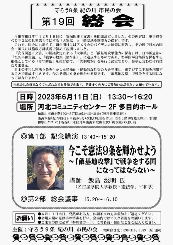 【事前告知】守ろう9条 紀の川 市民の会第19回総会