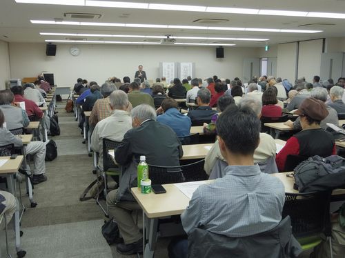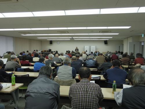 2017年11月4日にJR和歌山駅前の県JA会館で和歌山市と付近の9条の会26団体が共同開催した「9条の会共同講演会 安倍改憲を許すな」の写真です。(提供:南本勲氏)