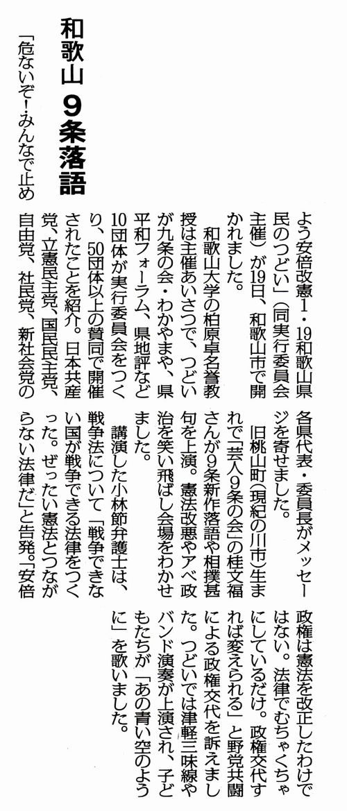 和歌山9条落語(しんぶん赤旗 2019.01.23)