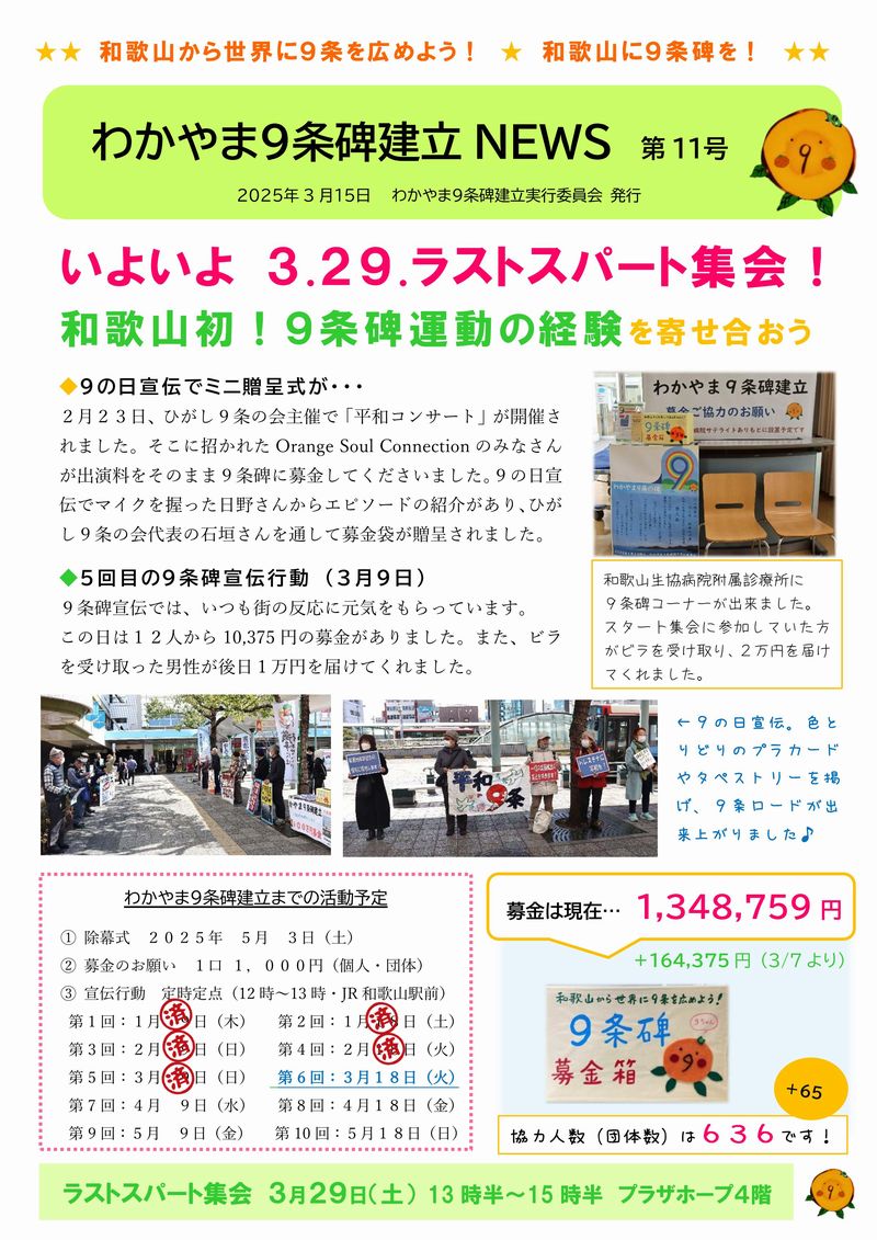 わかやま9条碑建立NEWS 第11号 (2025.03.15)