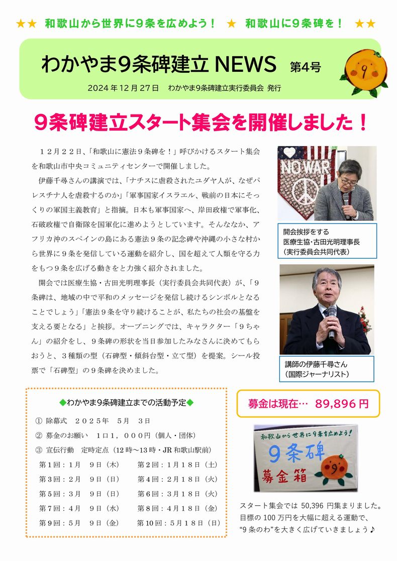 わかやま9条碑建立NEWS 第4号 (2024.12.27)
