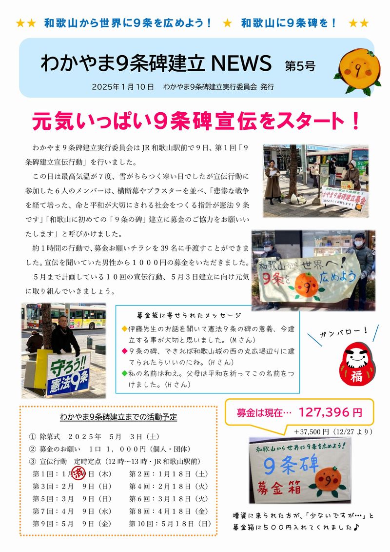 わかやま9条碑建立NEWS 第5号 (2025.01.10)