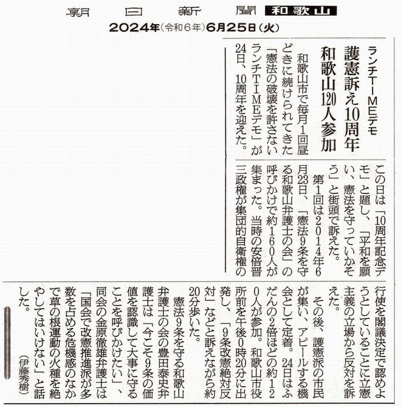 朝日新聞和歌山版 2024年6月25日付