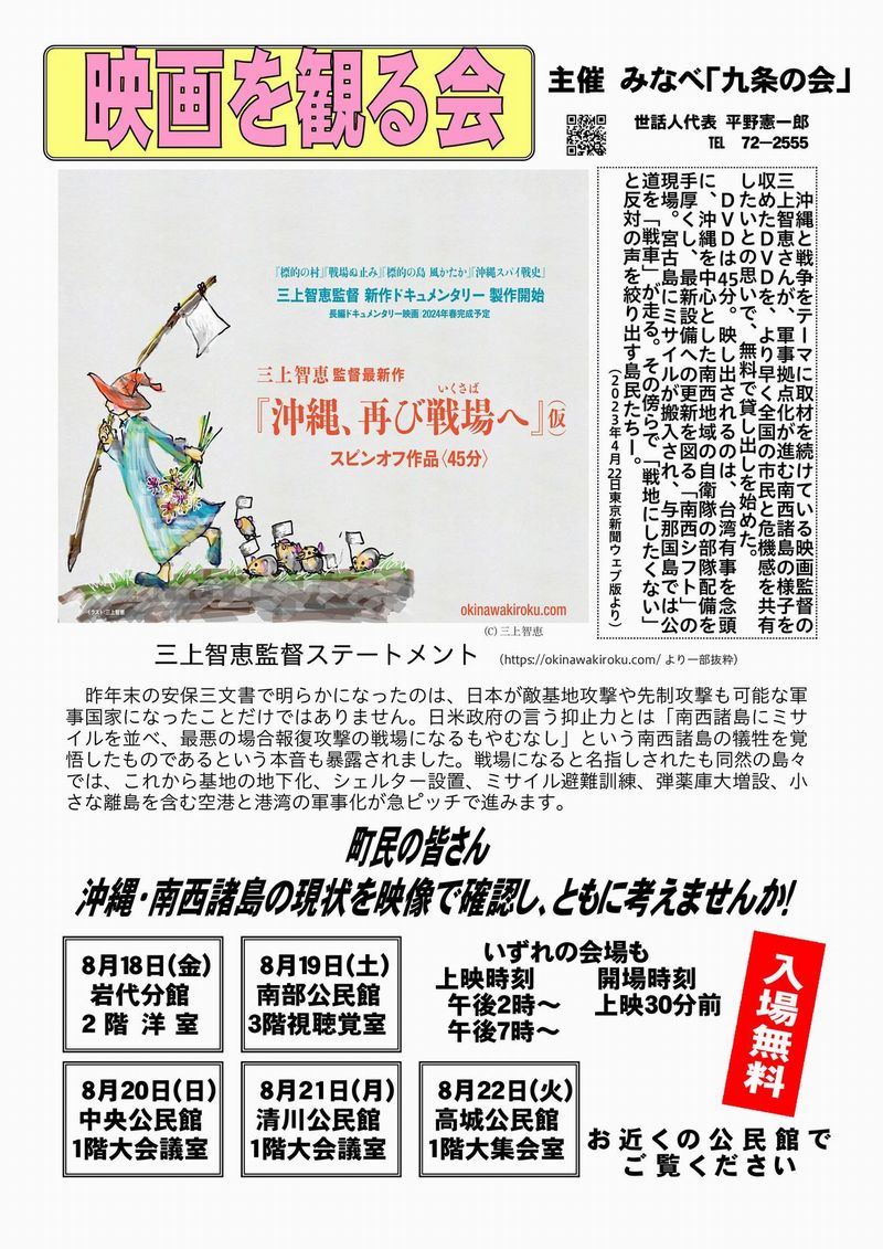 町民の皆さん 沖縄・南西諸島の現状を映像で確認し、ともに考えませんか!
