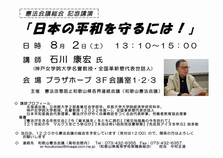 主催 憲法改悪阻止和歌山県各界連絡会議(和歌山憲法会議)