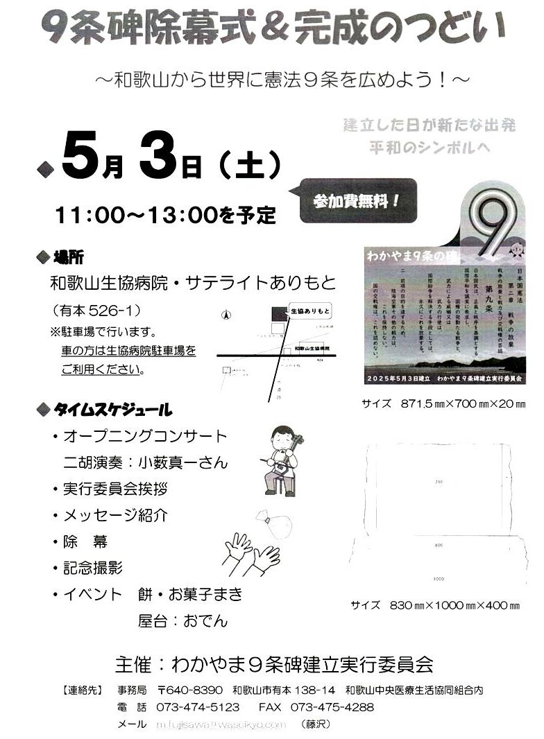 主催: わかやま9条碑建立実行委員会