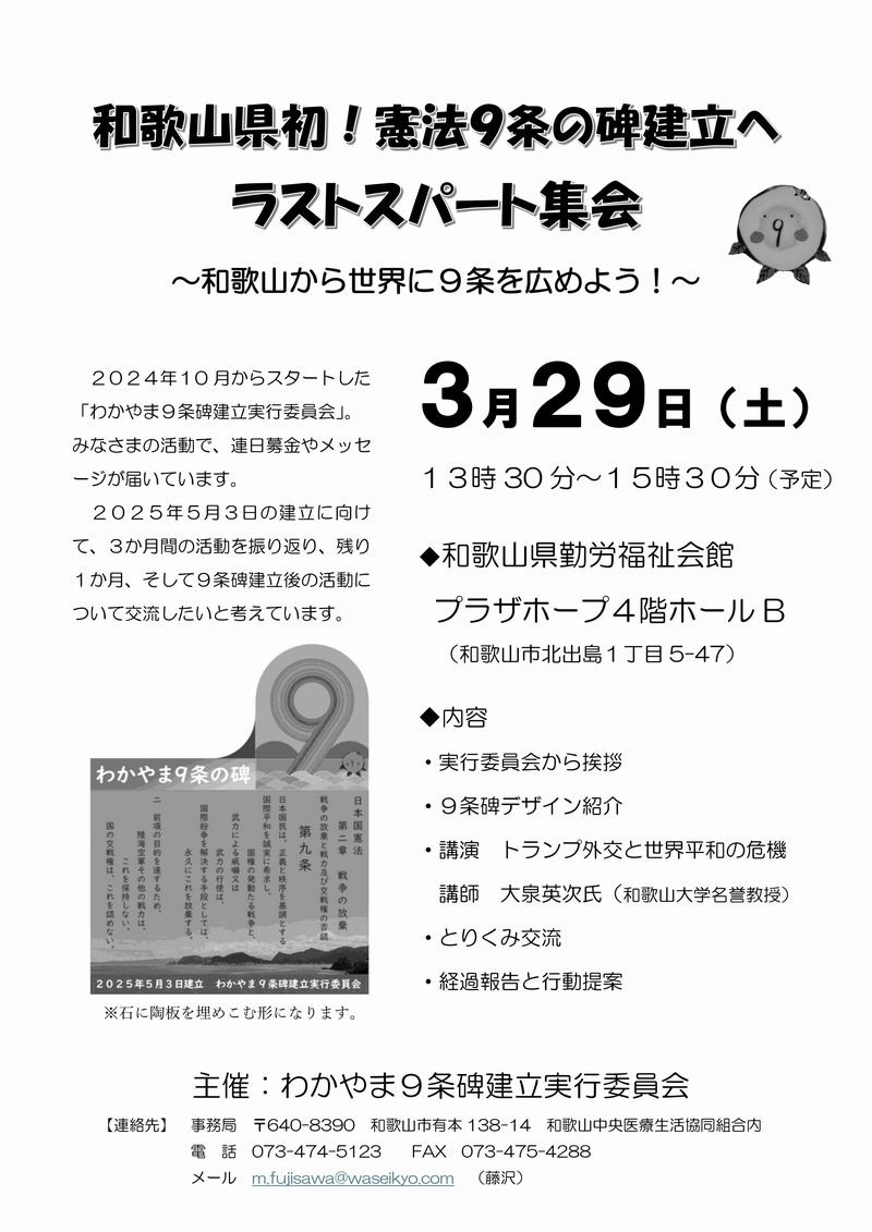 主催: わかやま9条碑建立実行委員会